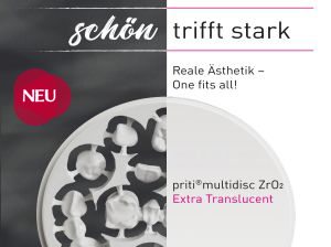 „Was macht priti®multidisc ZrO2 Multi Translucent PLUS so besonders?“ Dem Trend folgend, ein Rohling der im Schmelz und im Körper die positiven Eigenschaften der bereits etablierten Zirkonoxidqualitäten 4Y-TZP und dem hochtransluzenten 5Y-TZP vereint.
