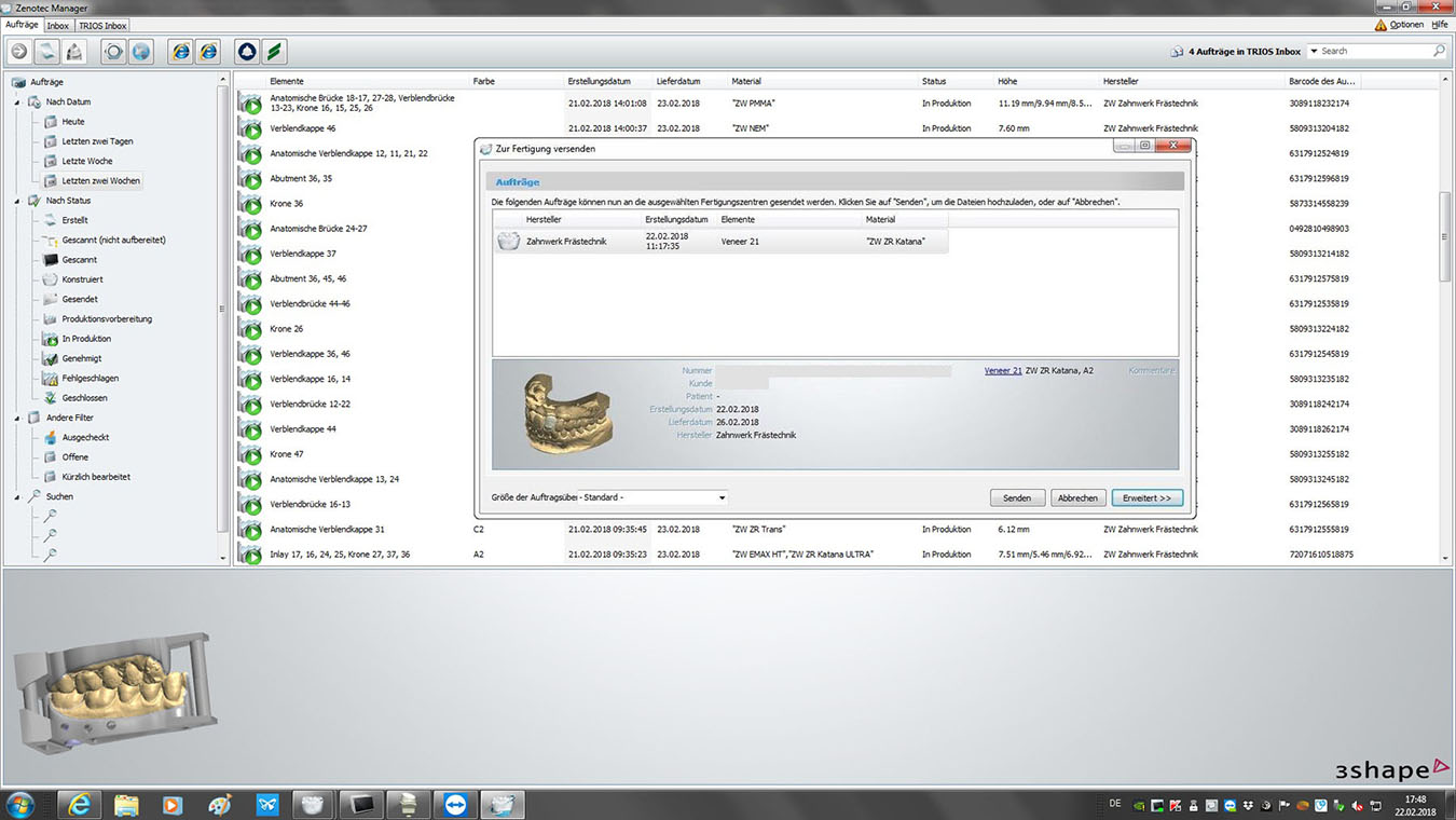 Bitte kontaktieren sie uns bei einem Erstauftrag im Vorhinein um Fräsparameter, Materialdatenbank oder Implantatbibliotheken abzugleichen und evtl. anzugleichen. So können wir ihnen eine optimal gefräste Passung gewährleisten.